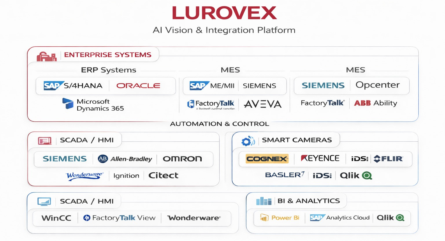 Lurovex supports seamless integration with third-party industrial equipment and software platforms, ensuring unified data flow, intelligent connectivity, and synchronized control across diverse automation ecosystems.